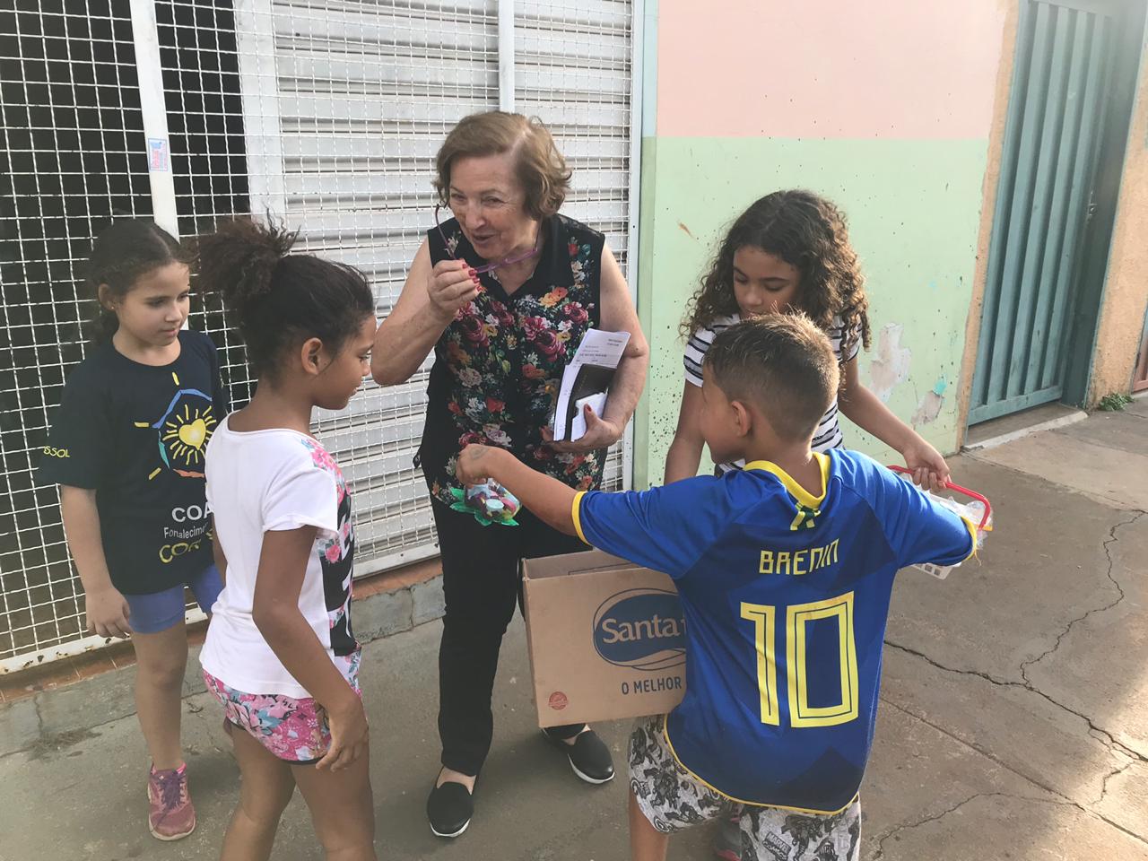 E, ao final do dia, com tanta alegria, alguns não conseguiram esperar a chegada em casa e a entrega foi feita ali mesmo, na saída, para as mães que vieram buscá-los. Com alegria e aquele abraço apertado, a semana foi gratificante para todos os envolvidos.