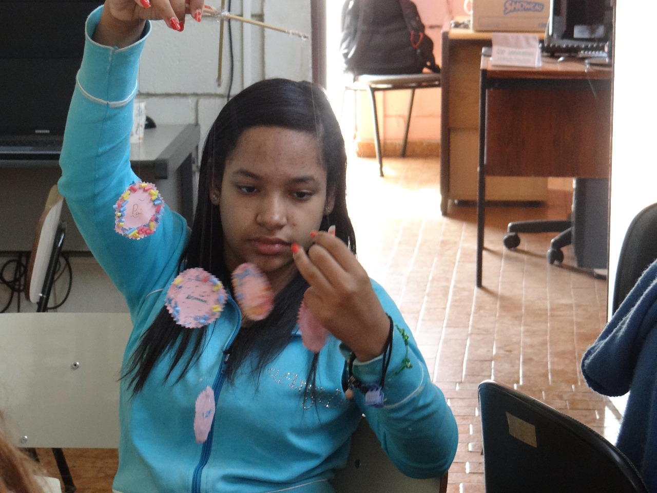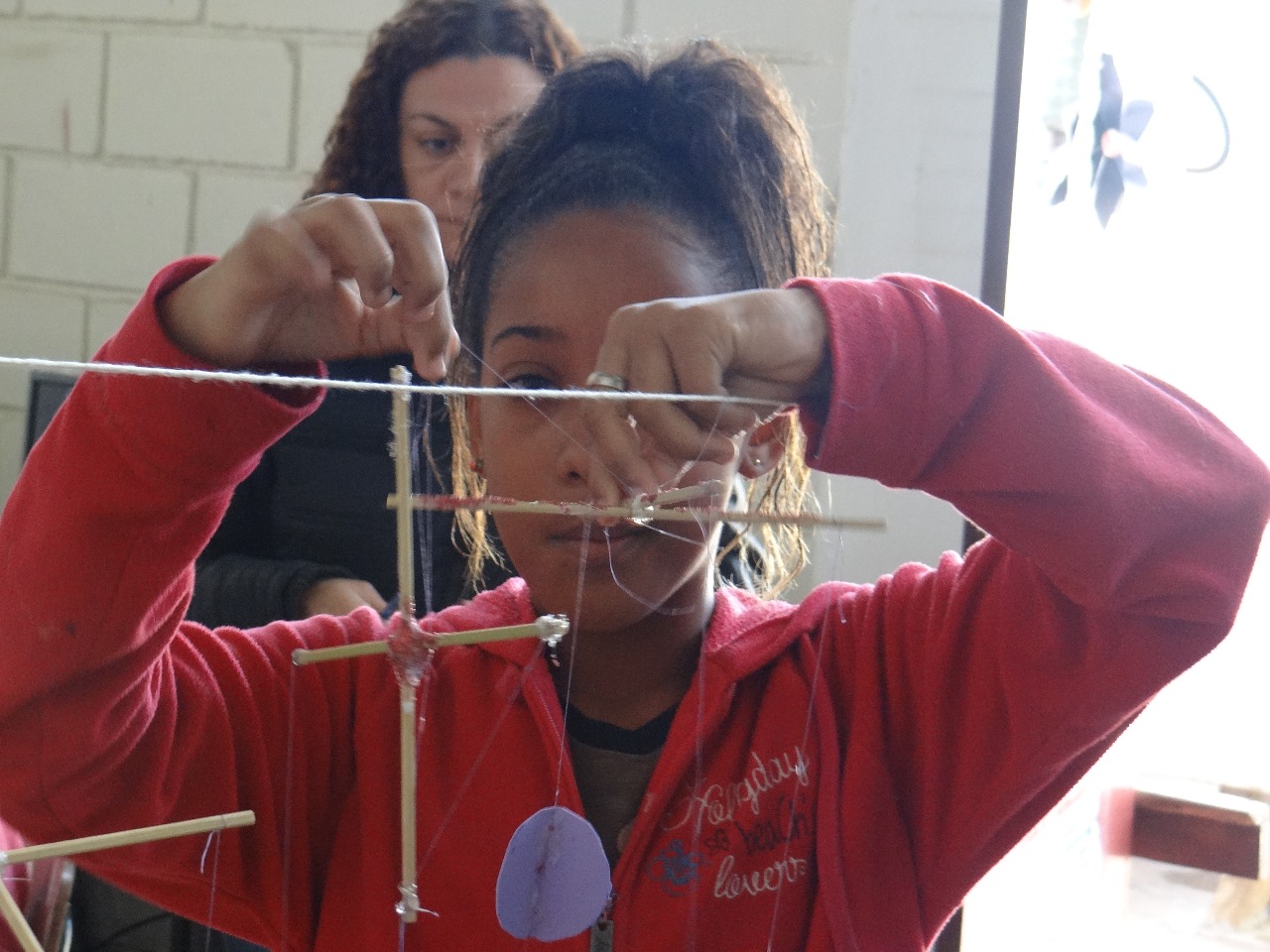 Criar uma bola com retalhos de pano foi uma das atividades divertidas do dia