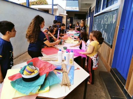 Pipas, nessa oficina contamos com a colaboração especial de Luís Henrique, pai de Arthur, fornecendo material para os pequenos confeccionarem suas pipas, relembrando sua infância.