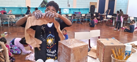 Essa oficina teve dupla motivação: a primeira, produzir pipas, e a segunda, soltá-las no Parque Tom Jobim, no dia seguinte.