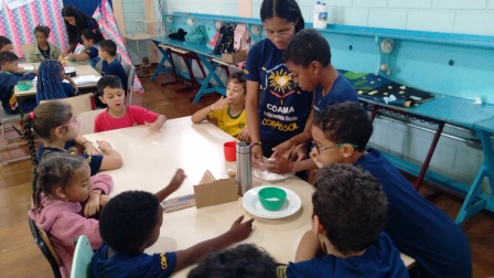 Enzo Cândido, Lara e Isaac, atentos e dedicados, foram os apoiadores dessa atividade.