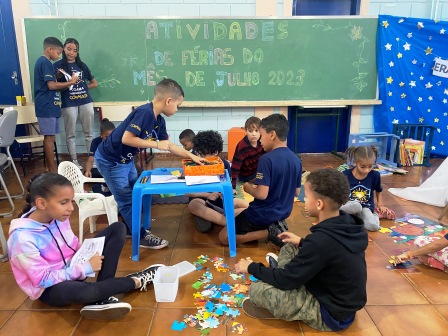 Akyane, Nilmar, Enzo, Breno e Pietro ficaram responsáveis por esconder as pistas em espaços do Corassol e da praça, aproveitando o descanso dos demais.
