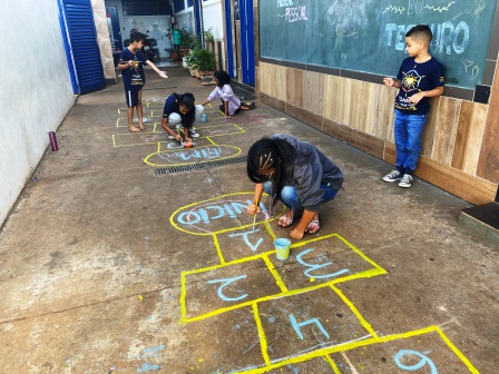 Durante a preparação do desenho da amarelinha, Luan, de 6 anos, também provocou profundas reflexões, dessa vez na tia Aline, ao dizer: