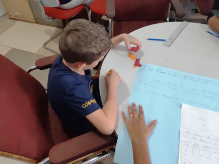Treinamos Inteligência Lógico-Matemática (conhecendo as funções da régua), Inteligência Espacial-Visual (compreendendo o espaço no papel), Inteligência Linguística (organizando as palavras ao descrever sobre a figurinha) e Inteligência Interpessoal (auxiliando os demais nas suas tarefas), sem deixar de ser momentos divertidos e criativos!