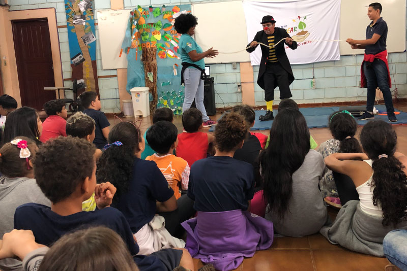 Além de nos proporcionarem atividades que fizeram refletir sobre conhecimentos gerais, ofereceram momentos de grande alegria e aprendizagem com o Palhaço Rosalino. Malabarismo, mágicas, teatro constituíram-se em oportunidade para aprenderem sobre equilibro, noção de espaços, concentração… Quanta alegria!